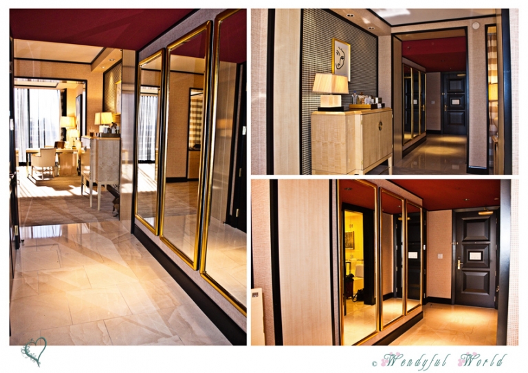 Upon entrance, the long hallway is lined with large panels of mirrors. In fact, lots of mirrors were used throughout the room to create an illusion of even roomier space.