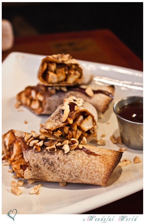 Allen’s BBQ Chicken Roll (BBQ chicken, carmelized onions, peanuts, cilantro and ginger rolled in wheat tortillas and flash baked) was really good. The crushed peanuts added some extra flavor and texture. I wish they would have served it with a little side order of cole slaw or something because the dish just looked boring.