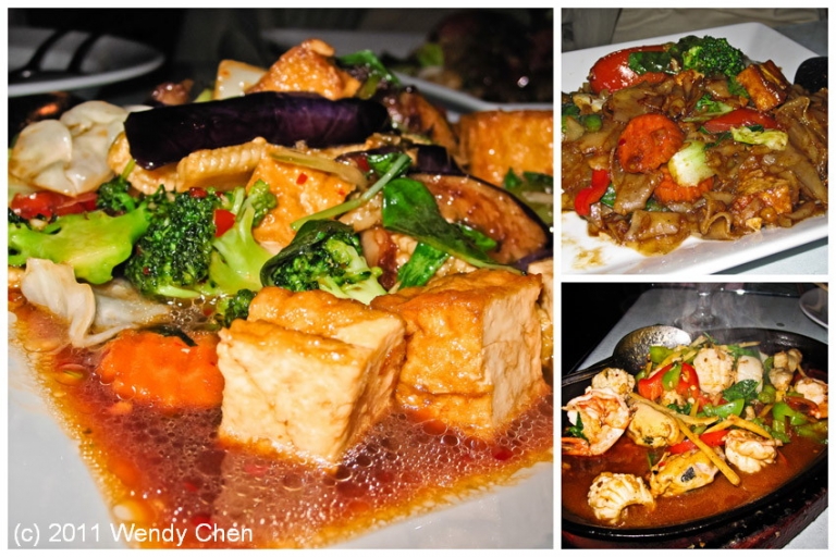 We also order the the Drunken Noodles with Tofu (Flat rice noodles stir fried with fresh chili & minced garlic, tomatoes, basil leaves, seasoned with dark soy sauce) , Seafood Delight (Assorted seafood: shrimps, calamari, scallops, Thai catfish filet, mussels sautéed in minced garlic, fresh chili, basil leaves, bell peppers & gingers), and Eggplant with Tofu (Sautéed with eggplants, fresh chili, minced garlic, bell peppers & sweet basil).