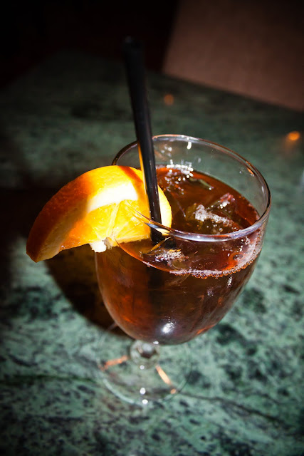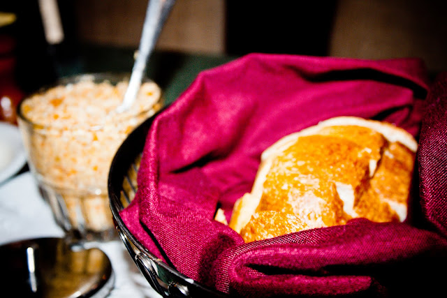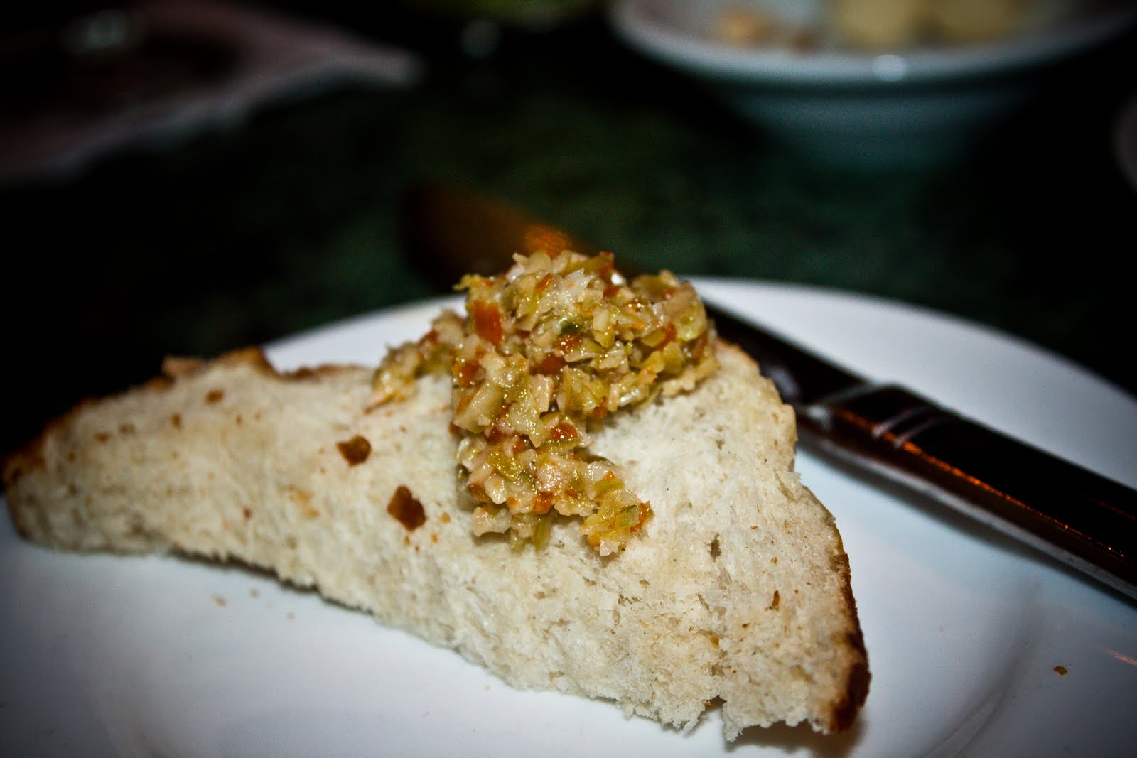 Neither Allen or I drink often, so our drink of choice is often iced tea. We also got a basket of bread with minced olives and butter.