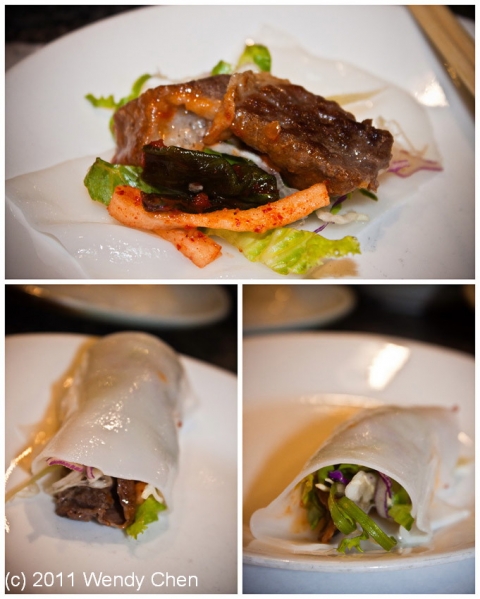 The common way to eat K-BBQ is to wrap the meat with some sides in either the rice wrapper like a little burrito.