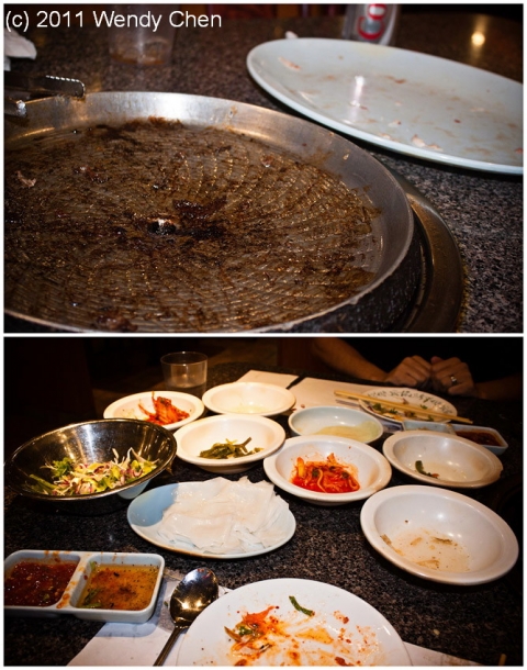 They offer all kinds of meat; Beef, Pork, and Chicken. Other items include Beef Tongue, Short Ribs, Seafood Pancake, Tofu Stew, etc. During weekdays, they also offer All-You-Can-Eat lunch for $16.99. For dinner, there are combo meals you can get, too. But on this particular trip, Allen and I opted to have 2 orders of Sliced Beef. These cook up nicely because of the marble of fat, and are still tender to eat fully BBQ’d.