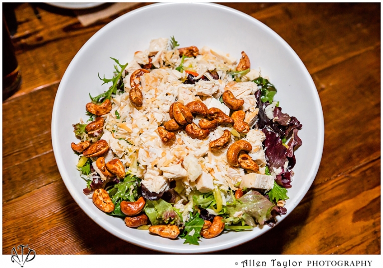 The lemongrass Chicken (scarborough farms baby mixed greens, grilled citrus chicken, mango, grilled pineapple, jicama, toasted coconut, cashews, thail chili and thai basil with lemongrass lychee vinaigrette) was a nice fusion dish.