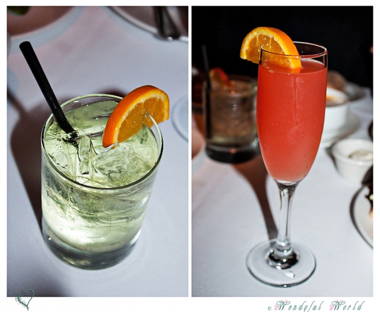 Grab a seat at the table or at the bar and order a couple of drinks.  The Late Night Menu features 3 Specially Designed cocktails; Old Blue Eyes Martini (not pictured) – Absolut Hibiskus, Blueberry Simple Syrup, Splash of Cranberry and Squeeze of Lime, All That Jazz Champagne Cocktail (pictured right below) – Mumm Napa and Blood Orange Juice, and King of Cool Cocktail – House Infused Orange Absolut on the Rocks with a Splash of Soda.