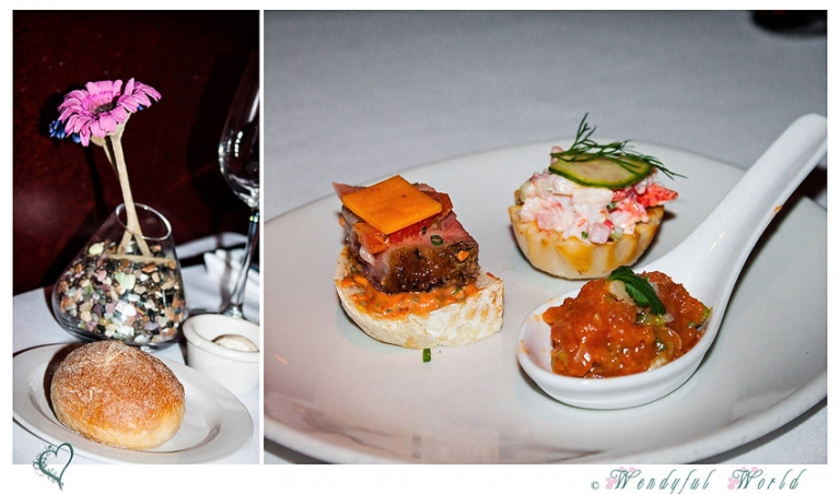 The server came around and served every table dinner rolls and a plate of Amuse-bouche (Tuna Tartar, Beef Bruschetta, and Lobster Salad Bruschetta).  What a tease!
