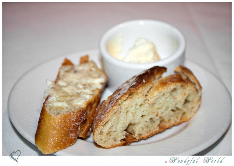 While we looked over the menu, warm bread and butter were served. These baguette slices were really good. The crust was crunchy but the bread soft with a tiny chewy texture.
