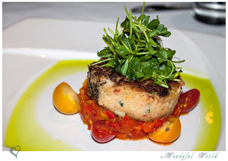 The Crab and Lobster Cake was excellent! I especially appreciated that it was pan-grilled and not fried. The Roasted Tomato-Peppers Relish complimented it so well as did the Lemon Vinaigrette.