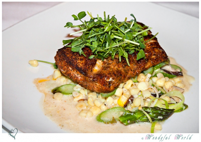 My daughter’s choice of entree was Pan Seared Blackened Mahi Mahi (Sweet White Corn, Leeks, Asparagus, Shiitake Mushrooms, Lemon Caper Butter Sauce). She thought the sauce tasted a lot like the soup she just had, so it got a little too much for her. She finished only about 1/2 of Mahi Mahi. When asked how it was, she gave a shrug.