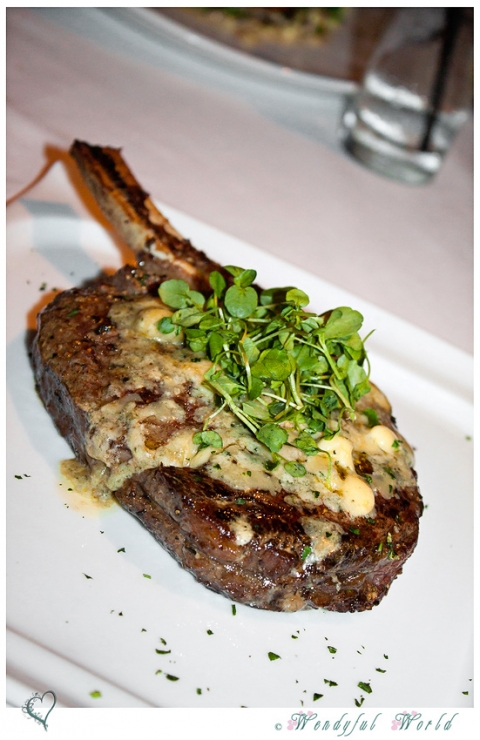 My son wanted meat, so I suggested 16oz Bone-in Prime Rib Chop Blue Cheese. The meat was very tender and flavorful, but personally I would have skipped the Blue Cheese because I found it too over-powering. Our server was nice enough to bring out Red-Wine reduction sauce and Peppercorn sauce for my son. I liked the Peppercorn one quite well.