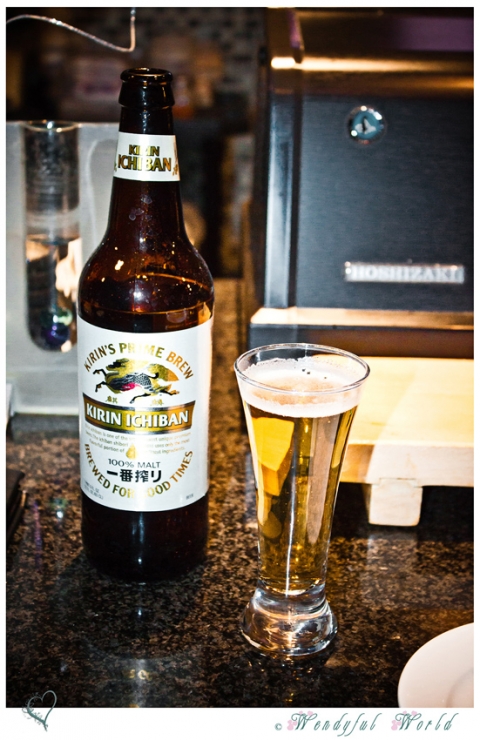 Allen ordered a bottle of Kirin Ichiban beer. I loved how cute the small glass was.