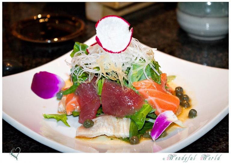 Second course was Sashimi Salad (Tuna, Salmon, Albacore, Garlic Olive Oil, Capers, Arugula, Daikon Relish). The fish were so fresh and the dressing gave it just enough flavor but not over powering the fish. It was clean, simple, and delightful.