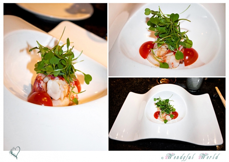 Third course was Lobster Salad (Chile Garlic, Grape Seed Oil Vinegar, Lemon Dressing). Oh my goodness! The lobster chunks were so delicious. The light tartness in the dressing (very minimum) really enhanced the sweetness of the lobster.