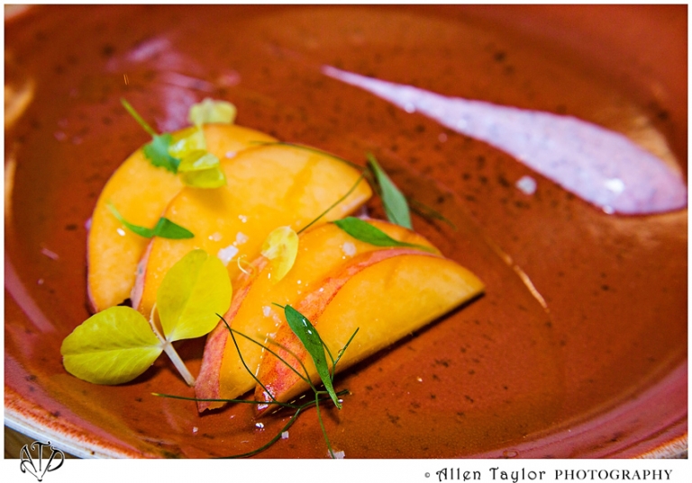 Allen and I were so lucky to have Chef Frank meeting us that night. He brought out the first dish of Amuse Bouche (Matsumoto Peach, Za’Tar Yogurt, California Olive Oil). The peach were very sweet and the pinch of sea salt enhanced the sweetness even more.