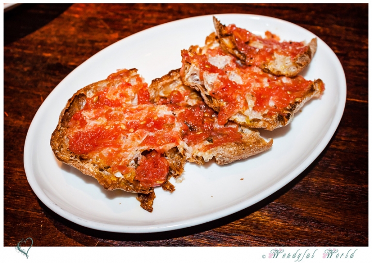 We basically let Mario be our food guide of the night. After he asked Allen and me what we liked and didn’t like, he brought out plate after plate of food. The first plate was Pan de cristal con tomate fresco (Toasted slices of uniquely crispy and ethereal bread brushed with fresh tomato). The bread was really light and crispy but still had enough texture. I don’t know how the tomato was prepared/cooked but it was completely PH balanced, in my own interpretation, not acidic nor sweet. It was just lovely.