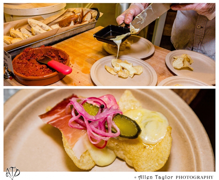 The Cheese Shop made melted Raclette cheese over chips, topped with mini gerkins, pickled red onions, and prosciutto.