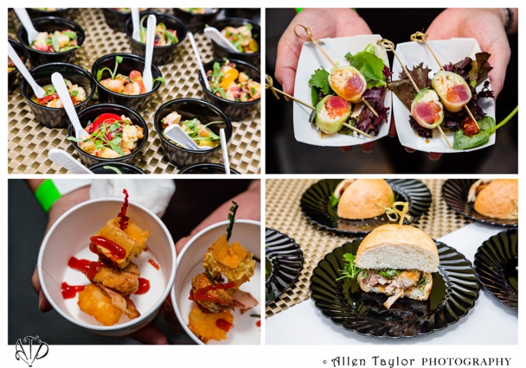 Cinepolis Luxury Cinemas, where you can watch a movie and dine, created Octopus Ceviche (pictured above left) and Crispy Pork Belly Sliders (pictured bottom right). The Iron Press served skewered waffle, fried chicken, bacon, and tater tots (pictured above bottom left) on a toothpick and drizzled with sriracha ketchup. And Jizake Sushi (formerly Waiiha Sushi) made Cucumber Rolls (pictured above upper right).