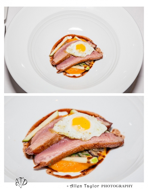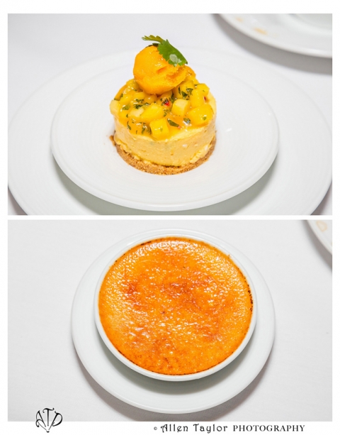 Cilantro & Chili Mango Cheesecake with mango sorbet and mango salsa (below top). Duck Egg Crème Brûlée with shortbread biscuit and fresh raspberries (below bottom). Did I have any more room for desserts? Barely! But I managed to take 1 bite of each. I wish I had a cow’s stomach because they were heavenly!