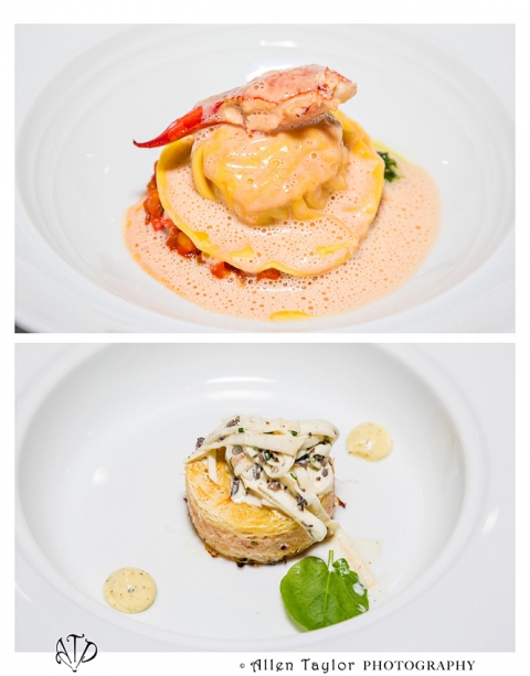 Lobster Ravioli with goat cheese, basil, and basque-style of peppers (below top) and Kataifi-Style Crab Cakes with cilantro, meyer lemon, and celeriac remoulade (below bottom) were crowd pleasures. If you like crab and lobster, you will love these.
