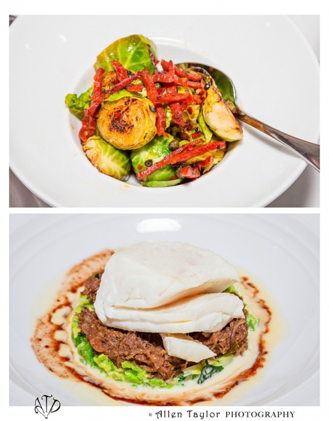 Charred Brussels Sprouts with capers, red onion, and Serrano ham (below top). I liked that this was cooked with ham instead of bacon. Bamboo Steamed Halibut with cumin spiced savoy cabbage, braised oxtail, braised baby leeks, and red wine dressing (below bottom). I have to tell you I was about to burst eating all the food that I only took a bite of it. The halibut was very mild but the oxtail really highlighted the flavor of the dish. .jpg)