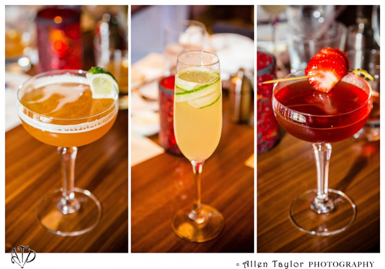 The center drink below is the The Yellow Jacket (Harradura Resposado Tequila, Cocchi Americano and Yellow Chartreusetastes) was a favorite and one of the stronger drinks. With a spicy twist this drink is served with a large ice cube for an even drinking experience. The last drink featured below right is the Whistle Stop (Hibiscus-infused bourbon, lime, Demerara simple syrup, egg white, and burlesque bitters). Along with the smooth blended ingredients that make up most of the cocktail, this crowd favorite is shaken with egg whites to make a kind of light meringue top.
