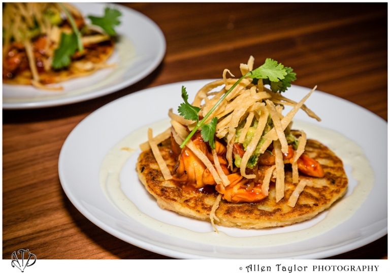Not to be out done, the tamale pancake is a unique must try dish. It is a cross between a broken down tamale and a corn based pancake. This tamale like meal also features BBQ style chicken, avocado salsa and crispy tortilla strips.