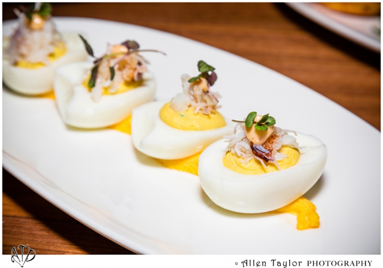 Featured items include the very tasty Deviled Eggs with Dungeness crab and chipotle aioli shown above and the Crispy Calamari that comes with a spicy chile sauce. Of course you will want to try some cocktails to sip while you eat. The three above are from left to right: The Derby (Evan Williams Bourbon, Carpano Antica, orange curacao lime) is a somewhat classic bourbon cocktail and is a great way to start the evening. The very refreshing cucumber flavored Spring Sipper (St. Germain Elderflower liqueur, Domaine de Canton ginger liqueur, prosecco, lime and cucumber). The third drink is the very beautifully red Martinez Fresco (strawberry infused Hendricks gin, house made rhubarb simple syrup, carpano antica, and lime juice). Although a bit sweet for my taste, you may wish to give it a try as an alternative to stronger or dryer cocktails.