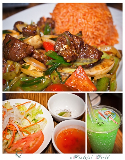Allen ordered his favorite – Shaken Beef (AKA Bo Luc Lac). Here it’s made a little saucier than others. I like that the meat is ‘pure’ and not tenderized with baking soda. The fried rice was made with ketchup. You can also get it with just steam rice. The dish was colorful as well as flavorful. It came with a side salad also.