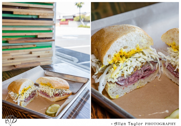 Matt is a native of OC. Growing up by the beach, his love of surfing and skating plays out in the decor of the restaurant. Simple and clean design with an open kitchen is inviting to the guests. ‘Raw and honest in sandwiches’ is how Matt wants to present Sessions to the public. I was especially drawn to the ‘green wall’. Each piece of the wood was cut and hand glued by Matt. Talk about dedication! Oh, and the leopard print concrete is just awesome!