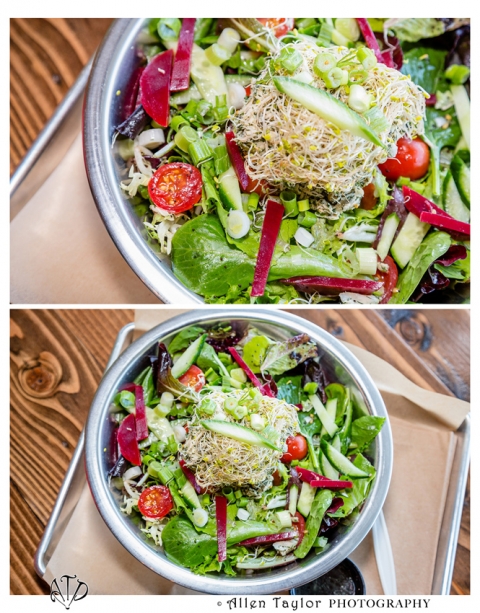 Charlie Salad (jalapeno-dill, albacore salad, mixed greens, pickled beet, tomato, cucumber, sprouts, scallion, poppyseed vinaigrette). We didn’t try this, another customer ordered it but we took a picture of it. She really enjoyed it.