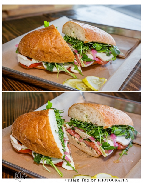 Next we chose Summer Zephyr (fresh mozzarella, marinated tomato, basil aioli, baby arugula, pickled onion, balsamic reduction, toasted french roll). This was much like a Caprese Sandwich. I am very particular about Caprese and this is the best Caprese (salad or sandwich) I’ve ever had. Even Allen, who normally refuses to eat ‘vegetarian’ food was so impressed by it. The quality of the ingredients and the house-made dressing are what set Sessions Sandwiches apart from the test.