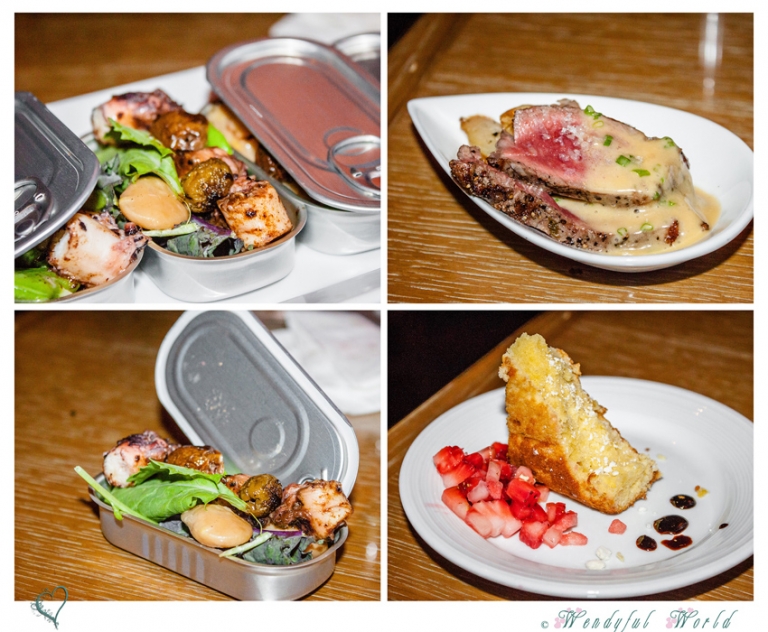 Charred Octopus (gigante beans, black garlic, calabrian peppers, grilled olives) – I loved how she came up with the idea of putting these in the little sardine cans! So adorable and tasted so good. Octopus is not the easiest seafood to cook but there were so tender and perfect.