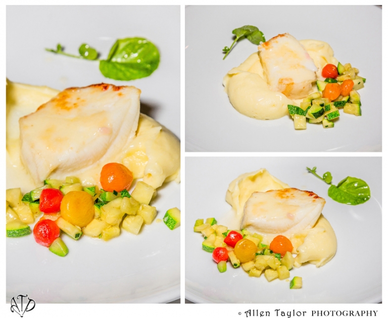 This dish may look simple but it was as perfect it gets!  The homemade pasta was perfectly al-dente! The sweetness in the yellow corn sauce paired very well with the citrusy fruity wine.    Course Two – Chilean Seabass (parmesan crust, yukon gold potato purée, spring squash, citrus butter) paired with chardonnay – kistler vineyards – les noisetier – sonoma coast – 2012.