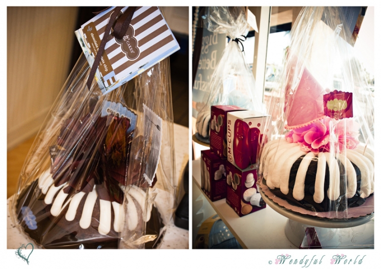 Bundt cakes are not ‘fancy’ cakes, but I like how they dress up the cake with really cute toppers.  I also thought the cups used for the little Bundtinis were very clever.  They are firm cups that hold their shapes.  During transport, you don’t have to worry about them colliding with each other and get all smooshed.