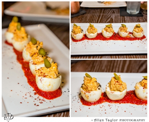 Everyone marveled at these beautiful TRIPLE PEPPER DEVILED EGGS (red pepper sauce, toasted urfa pepper, aleppo pepper, cornichons)!