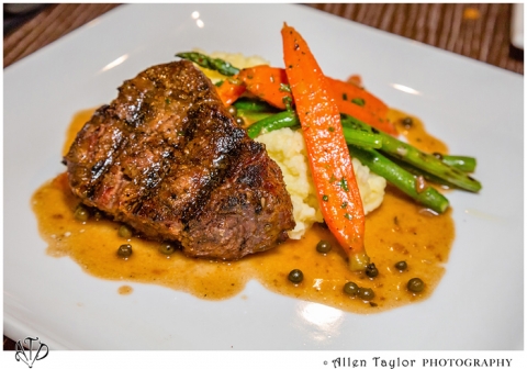 Allen ordered the PEPPERCORN FILET (8oz green peppercorn demi glaze, olive oil mashed potatoes, seasonal vegetables). What a beautiful dish with beautiful flavor! The Filet Mignon was grilled to perfection, so tender and juicy.