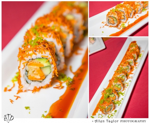 CRUNCHY YAMI ROLL (Tempura sweet potato, cucumber and avocado rolled, topped with crunchy shredded sweet potato, spinach tempura bits and served with sweet eel sauce) is a great variation from the traditional crunch roll which is made with tempura shrimp and topped with panko flakes.
