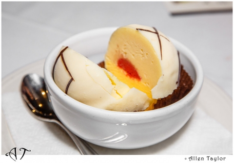 I ate so much gelato in Italy, sometimes twice a day. This Mango Gelato covered in White Chocolate was a perfect ending to a fabulous meal.
