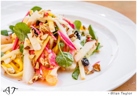 Apple Spring Salad (Julienned Gala Apples, Jicama, Mango, Watermelon Radish, Watercress, Toasted Marcona Almonds, Oatmeal, Dried Blueberries, Vanilla Yogurt Dressing) is new on the menu. I love the combination of the crunchy fruits, radishes and nuts with the tastes of sweet and tarts all in one bite! They just all work together so well.