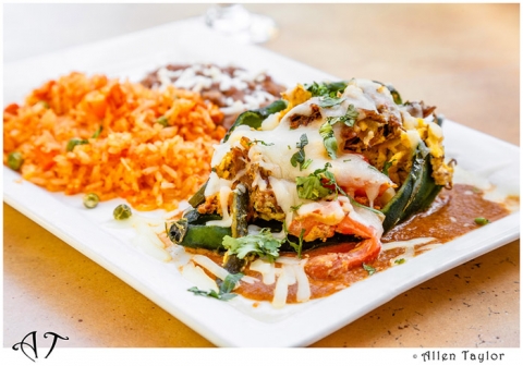 Machaca con Huevos Chile Relleno (Shredded Beef and Egg stuffed Poblano Chile, Smoked Tomato Salsa, served with Mexican Rice and Refried Beans). This dish should probably be on the menu all the time because it’s flavorful and hearty. I think we can eat it any time of the day.