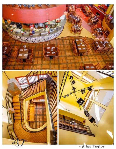 The restaurant is a lot more spacious than I thought with vibrant colors inside and out. Downstairs is where the open kitchen is that you can watch where the culinary magic happens. The semi-spiral staircase leads to another dining area upstairs with a full bar and a beautiful view to the promenade from the outdoor patio and balcony.