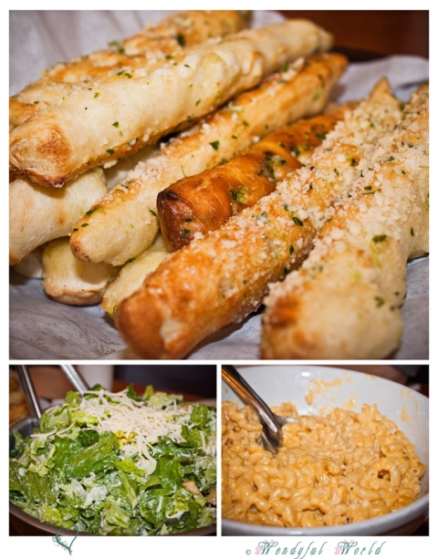 I love the breadsticks. They were warm and soft with garlic Parmesan cheese. The medium salad (we chose Caesar) was no medium at all. The meal was for 4 but that salad could feed 8. It was a huge bowl!!! The large M & C was LARGE alright. Again, that was portion enough for 8!!! Loved the Caesar Salad, didn’t love the M & C. The pasta was under-cooked and some pieces were still hard.