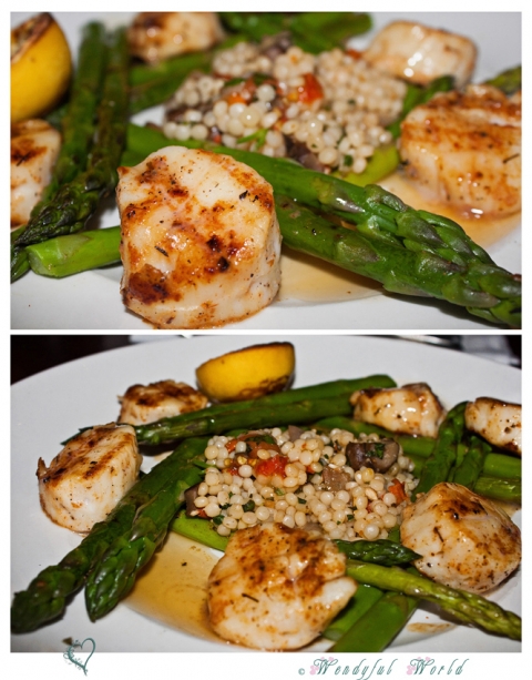 I am not a fan of scallop but my daughter is.  The Caramelized Sea Scallops grilled and served with roasted asparagus and tomato-mushroom pearl pasta looked really good.  She convinced me to try a piece and it was delicious!  They were big and tender and very flavorful!  I think I will take my mom here next time because I know she will enjoy it, too.