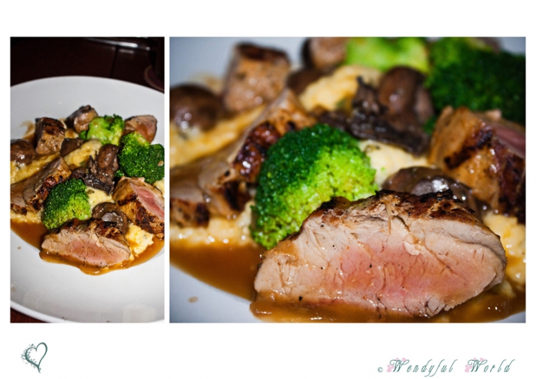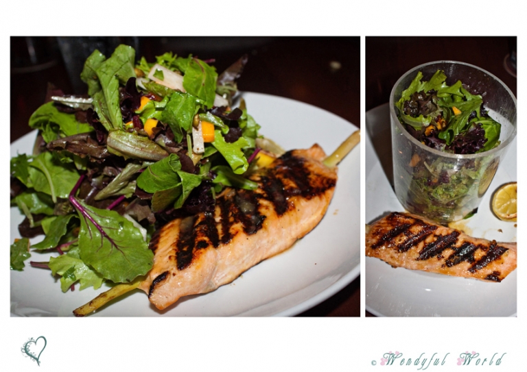 I loved Lemongrass Salmon Salad with organic field lettuce, sundried cranberries, jicama and white balsamic vinaigrette so much that I just had to get it again.  In fact, I can eat this everyday!  I wish I had the recipe for the vinaigrette.  Allen decided to try the Wood-Roasted Pork Tenderloin with herb polenta, broccoli, cremini mushrooms and shallot-Dijon glaze.  Didn’t think you could eat pork medium?  Well, apparently you could.  These pieces were very tender.  However, once the accompanying sauce were gone (absorbed by mash potato), the meat was pretty bland.