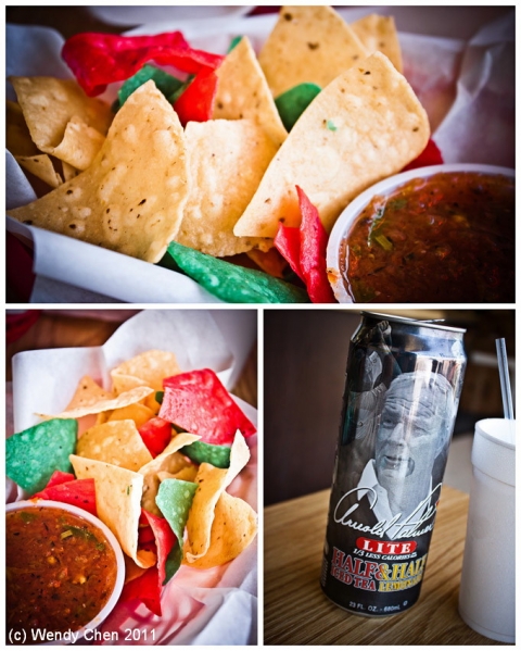 First we got a tall can of Arnold Palmer to quench our thirst. Jim, knowing it was our first time at the Deli kindly brought over some Chips and Salsa for us to try. I love the different color chips and the salsa had a nice kick to it.