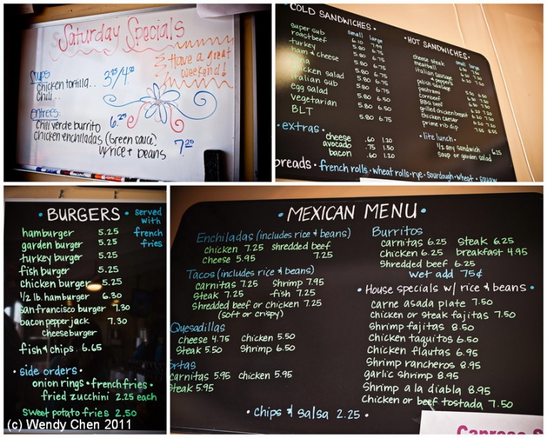 The menus is written on the black and white board. There are quite a lot to choose from. Burgers, salads, hot and cold sandwiches, and even Mexican favorites.