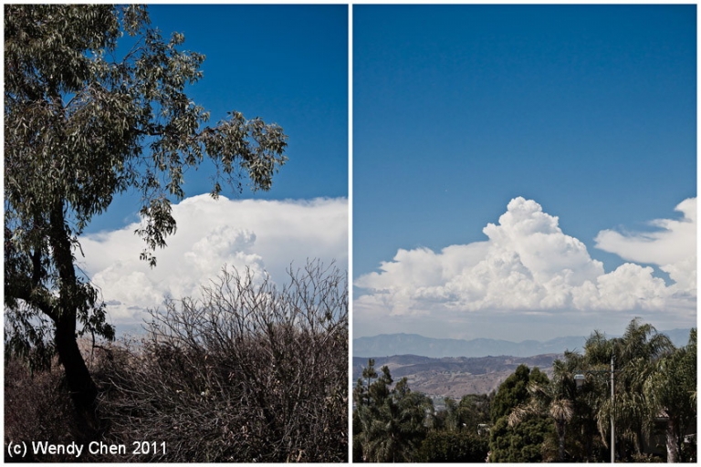 While the east coast is battered by Hurricane Irene, So Cal is having a heat weave. 97 degree was the reading from my car thermometer! Holly smoke! As I was driving, I saw the beautiful sky, I just had to pull over and take a few pictures!